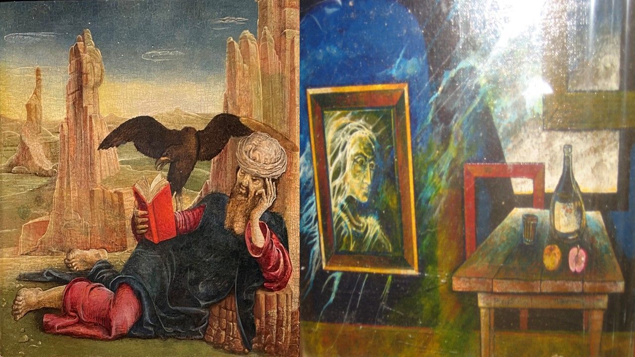 Cosmè Tura, con “San Juan Evangelista en Patmos”, hace hincapié en la inevitable toma de contacto con el interior del ser humano, mientras que Sánchez Kelly, a través de “Naturaleza muerta”, nos recuerda que el tiempo es efímero y que lo importante es ser conscientes de nuestra auténtica naturaleza.
