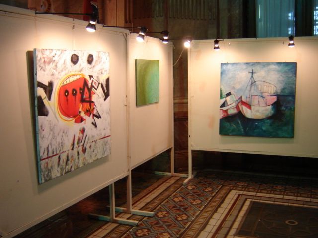 Foto exposición de Sánchez Kelly en el Senado de la Nación Argentina con alumnos-artistas del TAVE UNNE. año 2005,evento propiciado por la Senadora Miriam Curletti