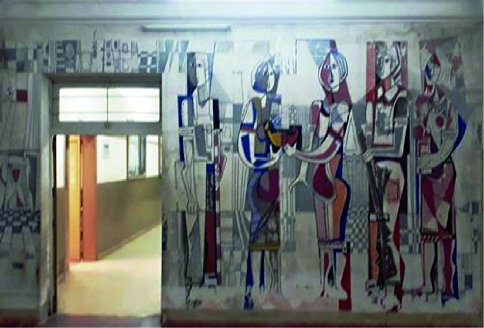 Fotografía Mural "Alegoría de los estudios universitarios" de Sánchez Kelly. UNNE. Campus Resistencia, año 1965( urge su restauración)