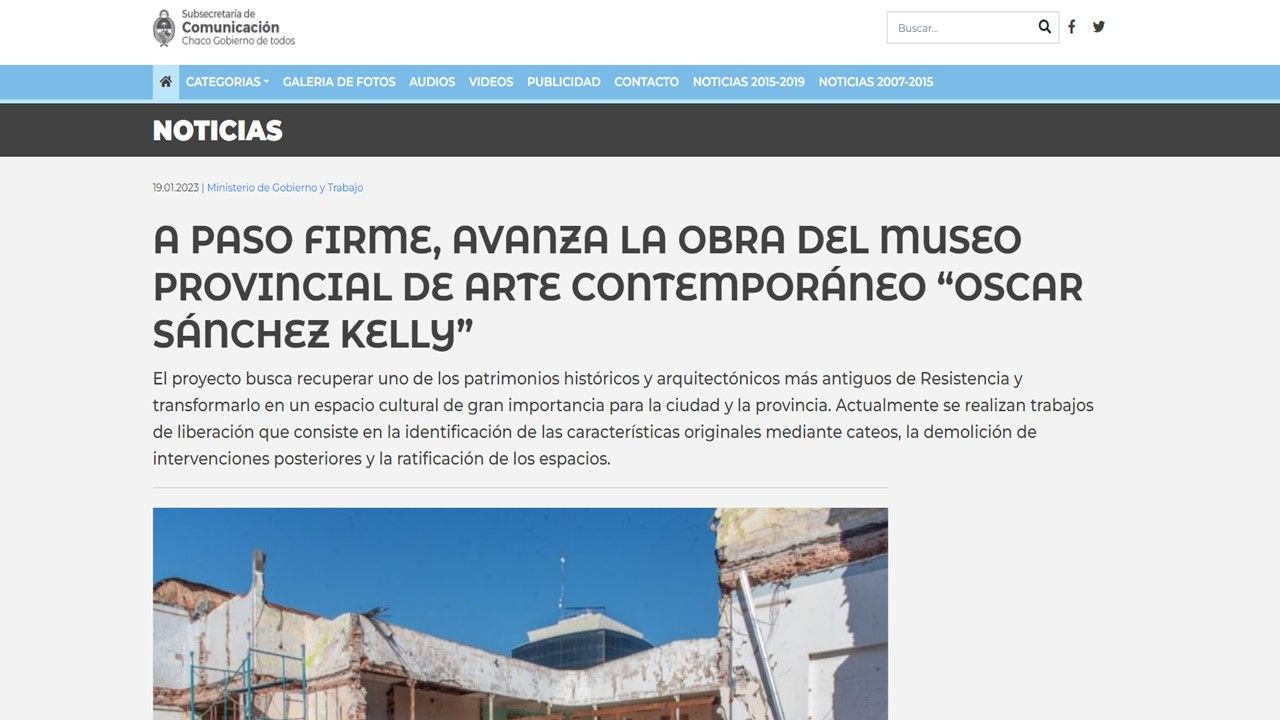 Publicación Diario Norte. Obras Museo Sánchez Kelly